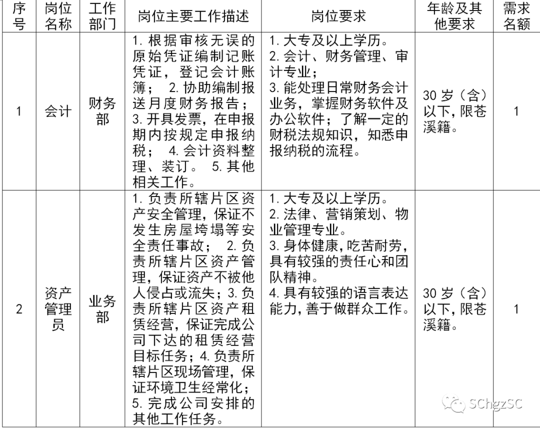 面向社会公开招聘苍溪籍符合岗位条件的人员。