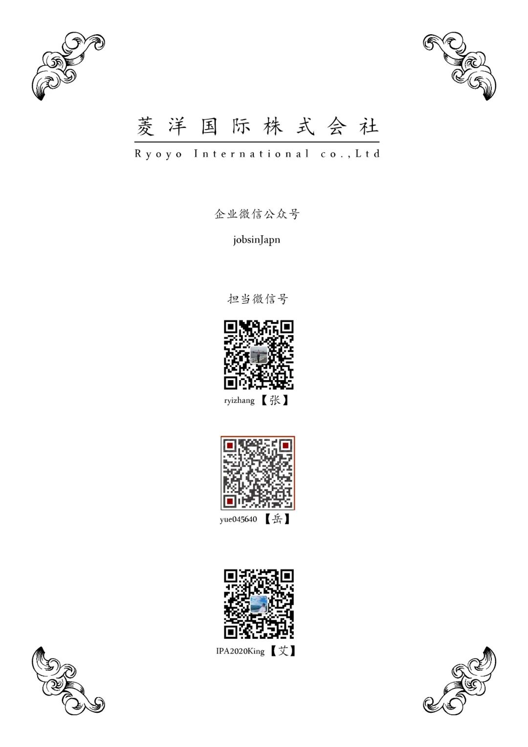 1. 食品行业相关工种技能实习生三年期满正常修了者,或通过日本饮食料品制造业-特定技能考试者,优先录用。