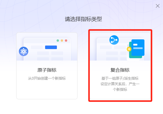 复合指标的创建过程和原子指标类似,这一次我们点击“创建指标”后,选择创建复合指标。