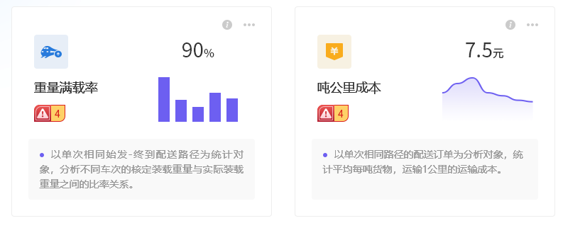 以单次相同路径的配送订单为分析对象,统计平均每吨货物,运输1公里的运输成本。