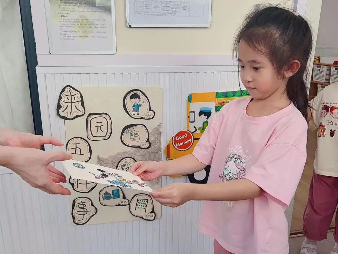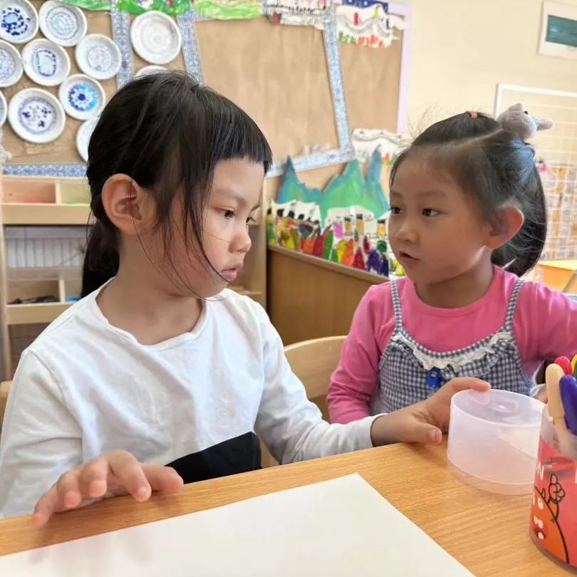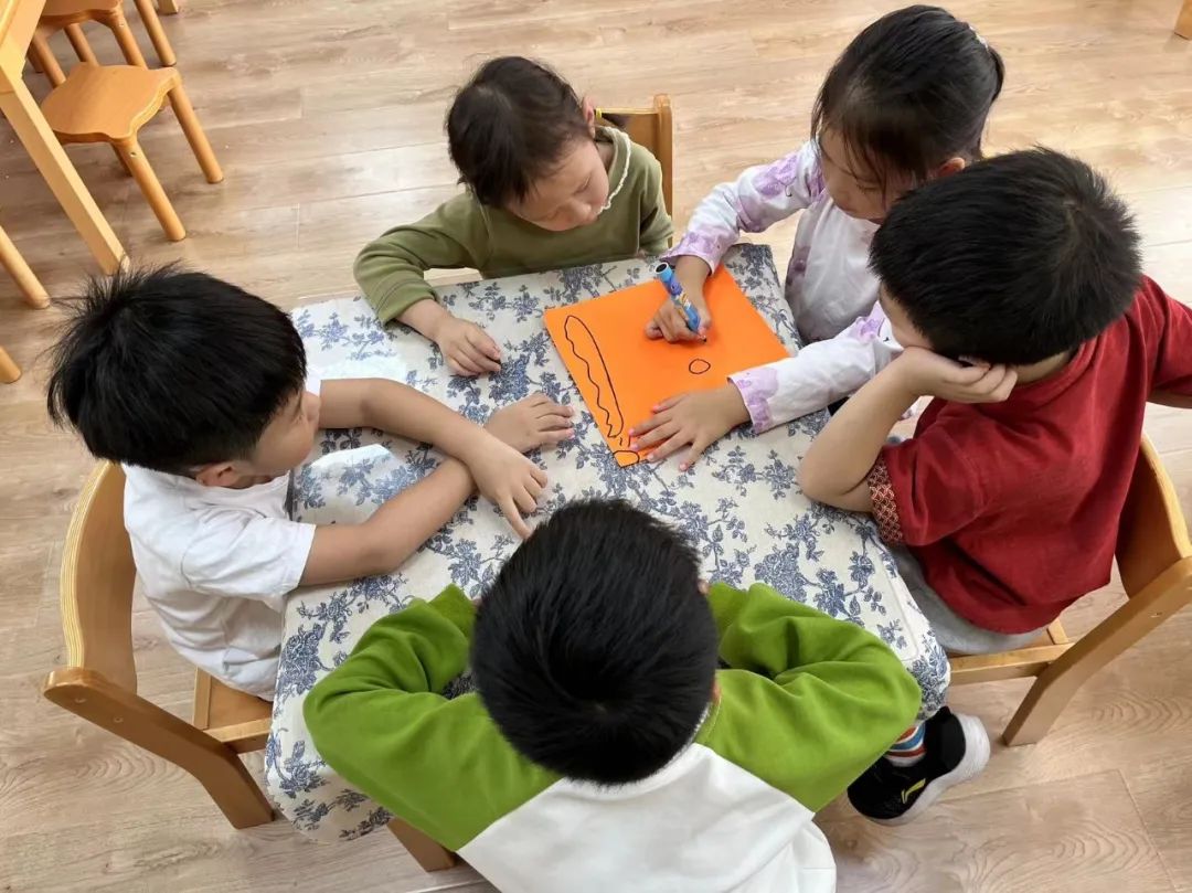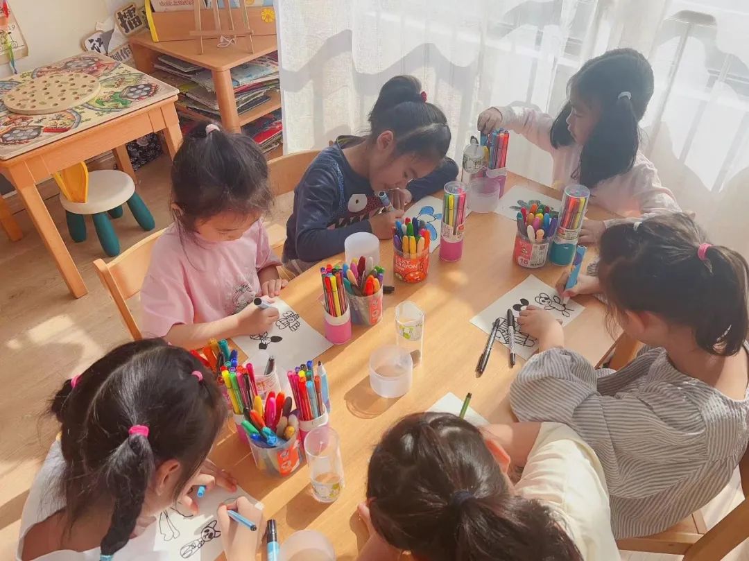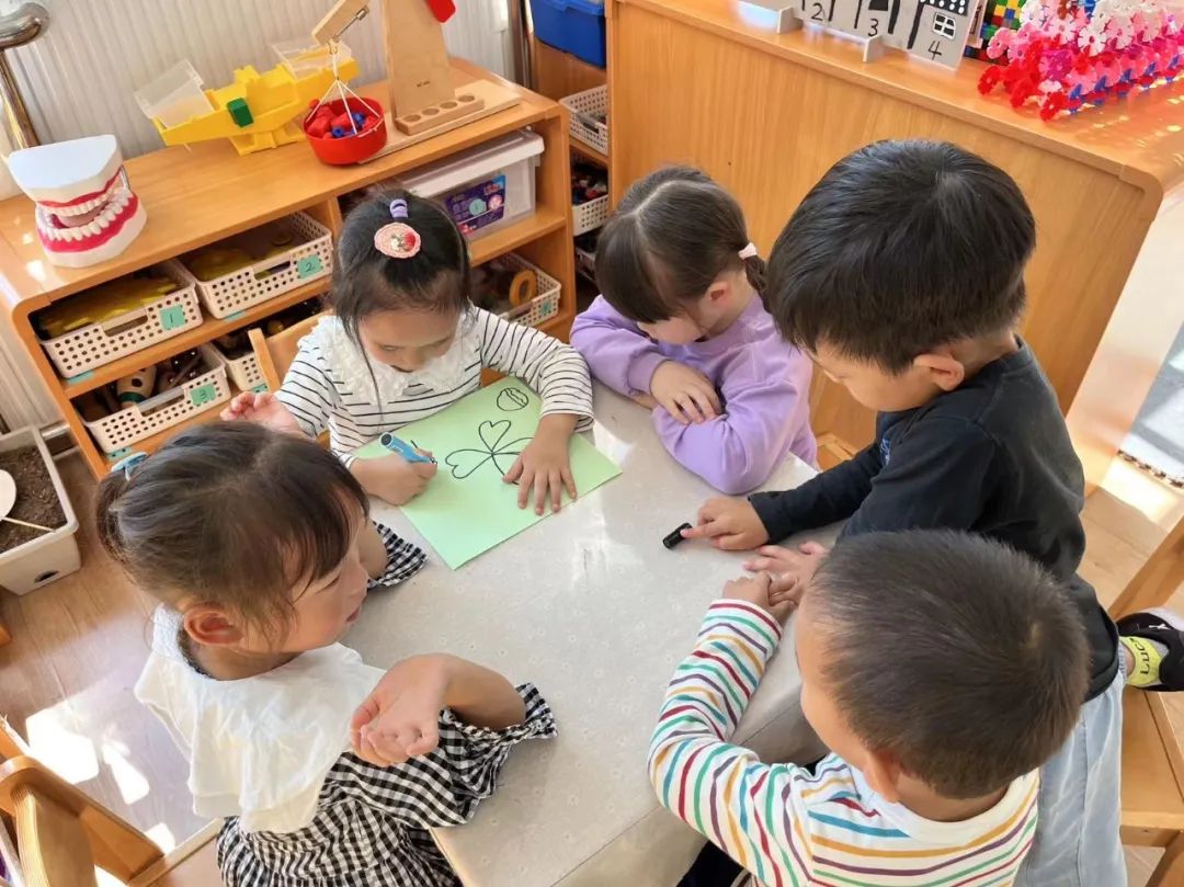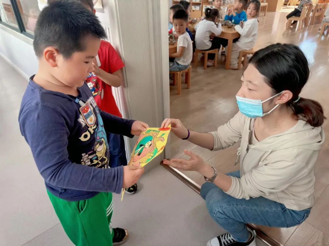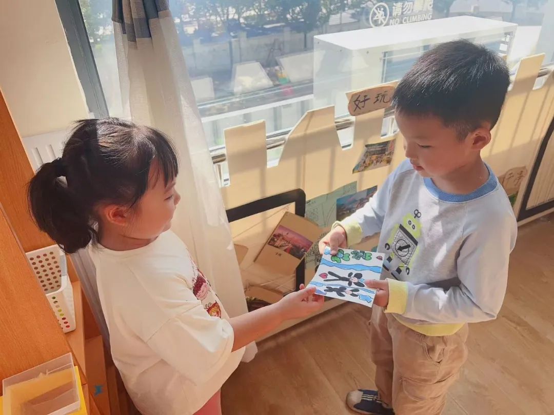 宝贝们与同伴共同讨论、绘制进博宣传卡,以进博宣传员的身份向身边的教师、家长、同伴分发,让更多人了解进博会、走近进博会,一同参与到助力进博的行动中来。