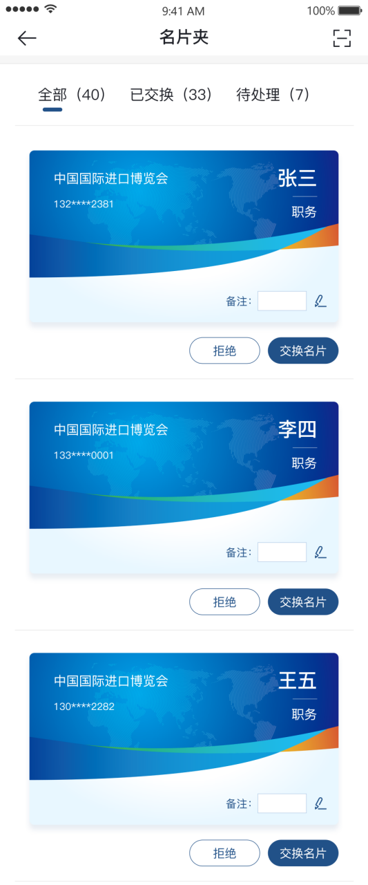 3.会后,可使用电子名片夹整理收集到的名片,按需求进行分类和归档。