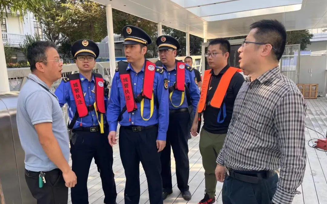 联合市城管执法总队在苏州河核心段水域范围开展管执联动,先后对武宁路桥施工船、西康路桥游船码头进行了检查,并针对检查中发现的问题提出立即整改或限期整改要求。