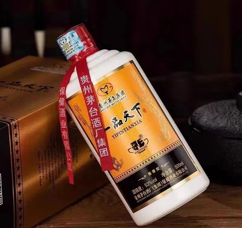 53度茅乡一品天下酒是茅台酒系列产品。属于酱香型酒,酱香型酒采用高温制曲,二次投料,堆积发酵的生产工艺,一般一年为一个生产周期。取酒后经过勾兑、陈贮而成。其酒味呈酱香、窖底香、醇甜香而具特风格。酒体丰满,香气幽雅,酒味丰满、醇厚。与茅台酒同宗同源,一脉相承。他是以高粱、小麦为原料,按贵州茅台酒工艺生产,经长期贮存精心勾兑而成的大曲酱香型白酒。具有酱香浓郁、幽雅协调、丰满醇和、回味悠长、空杯留香的茅台风格。