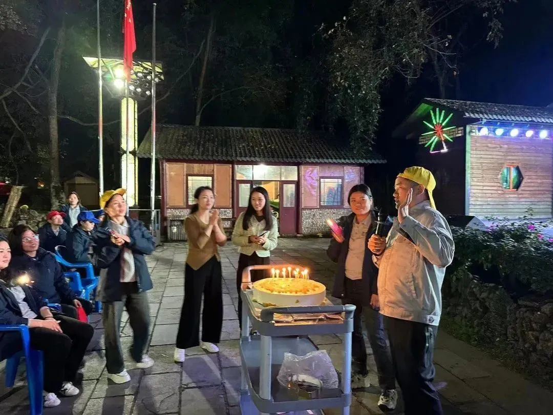 晚上全员进行了自助烧烤,伴随着酒肉的香气,大家纷纷畅所欲言,使大家对彼此有了更深层次的认识,烧烤后便组织部门集体过年度生日,由部门负责人及员工代表进行切蛋糕仪式。随后的篝火晚会中,大家都踊跃展现自我,将喜悦以舞蹈的形式展现出来。