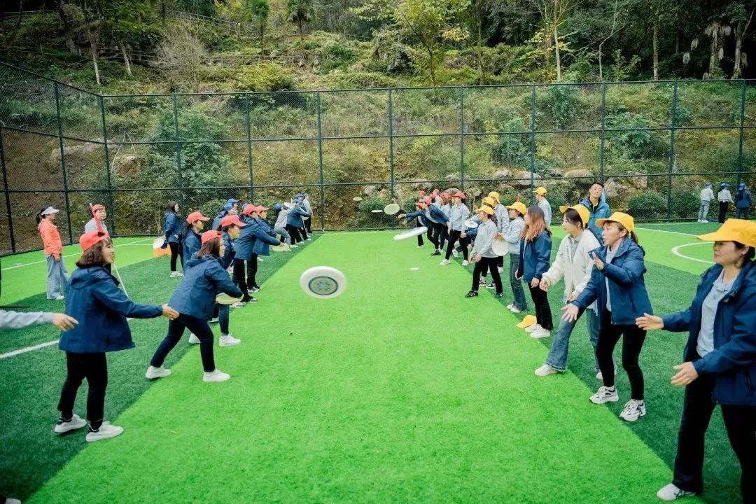本次活动主要有开营破冰、鼓动人心、目标市场、一冲到底、主题飞盘等游戏项目。大家在团队教练的带领指挥下,将人员分成8个小分队,大家都很快融入集体,为队伍起队名、起口号、排练队舞等,以此激发团队精神意识。