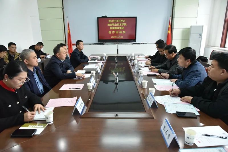 张永刚重点介绍了曲沃经开区的人文优势、区位优势、产业优势,特别是园区龙头企业——晋南钢铁集团的整体情况、生产规模、发展前景、企业人才需求和政策。他指出,潞安职业技术学院是经开区开展校企合作的可靠伙伴,双方的合作既有坚实基础,又有广阔空间。希望学校领导到经开区考察调研,力争早日在晋南钢铁集团开设分校。经开区及晋南集团将以更高效率、更好环境、更优服务,推进全方位合作实施,实现精准化、点对点、全流程的高效人才培养,共同打造“校地”“校企”合作典范。