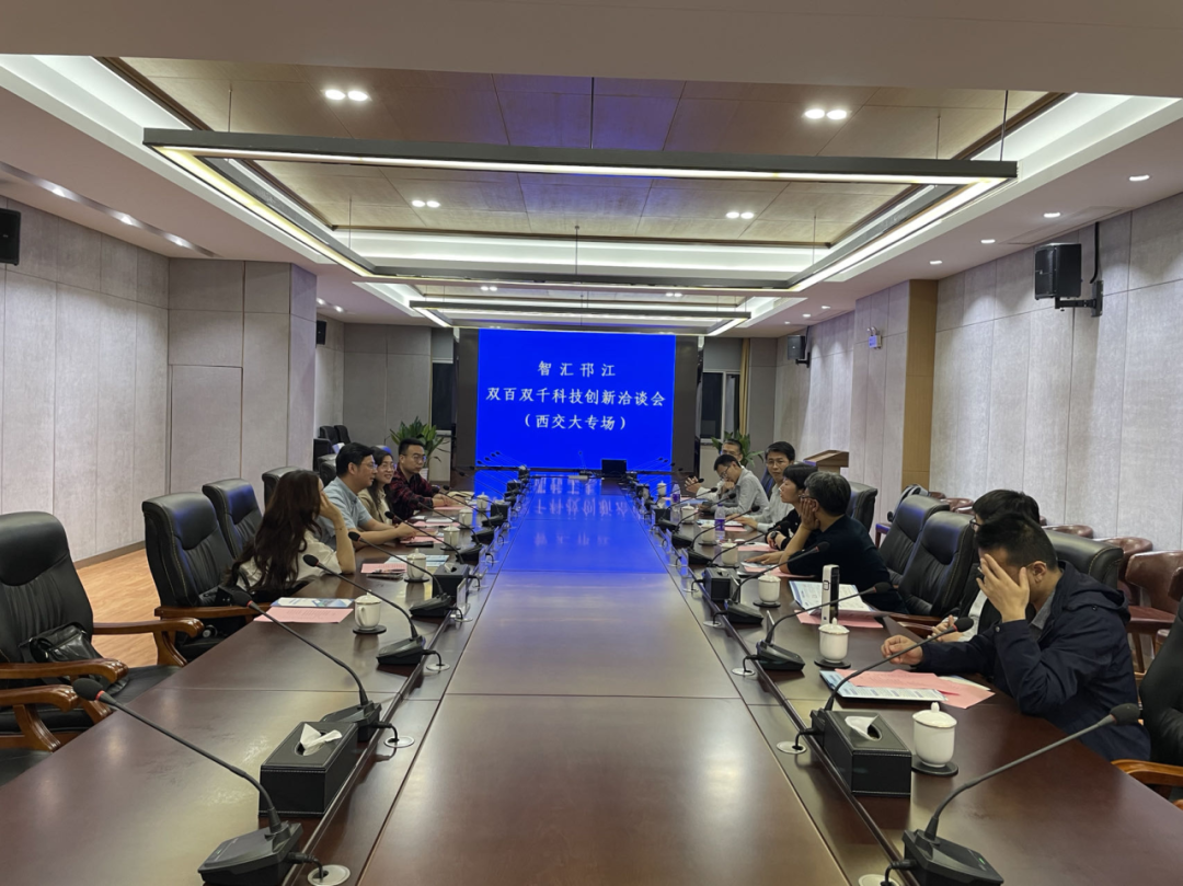 近日,“智汇邗江双百双千”科技创新洽谈会(西交大专场)在邗举行,西安交通大学物理学院党委书记张莹、副院长杨志懋以及相关专家教授,邗江区委组织部副部长徐宽兴、邗江区科技局副局长黄芸、科技发展中心副主任王茸茸以及相关科室负责人参加洽谈。