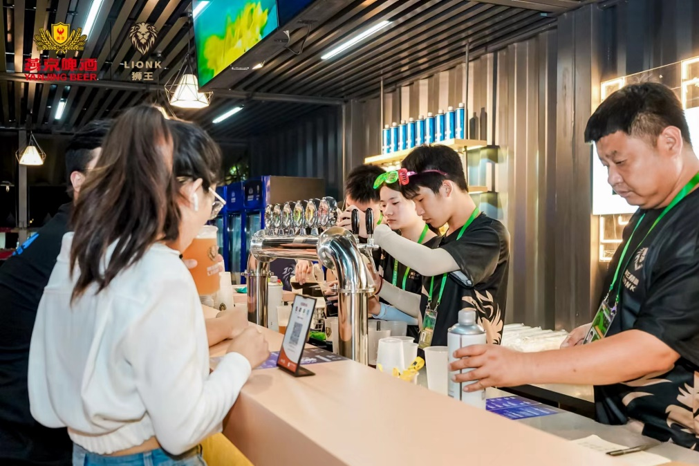音乐、啤酒在这里激情碰撞,络绎不绝的人群穿梭在音乐舞台与狮王精酿吧之间。