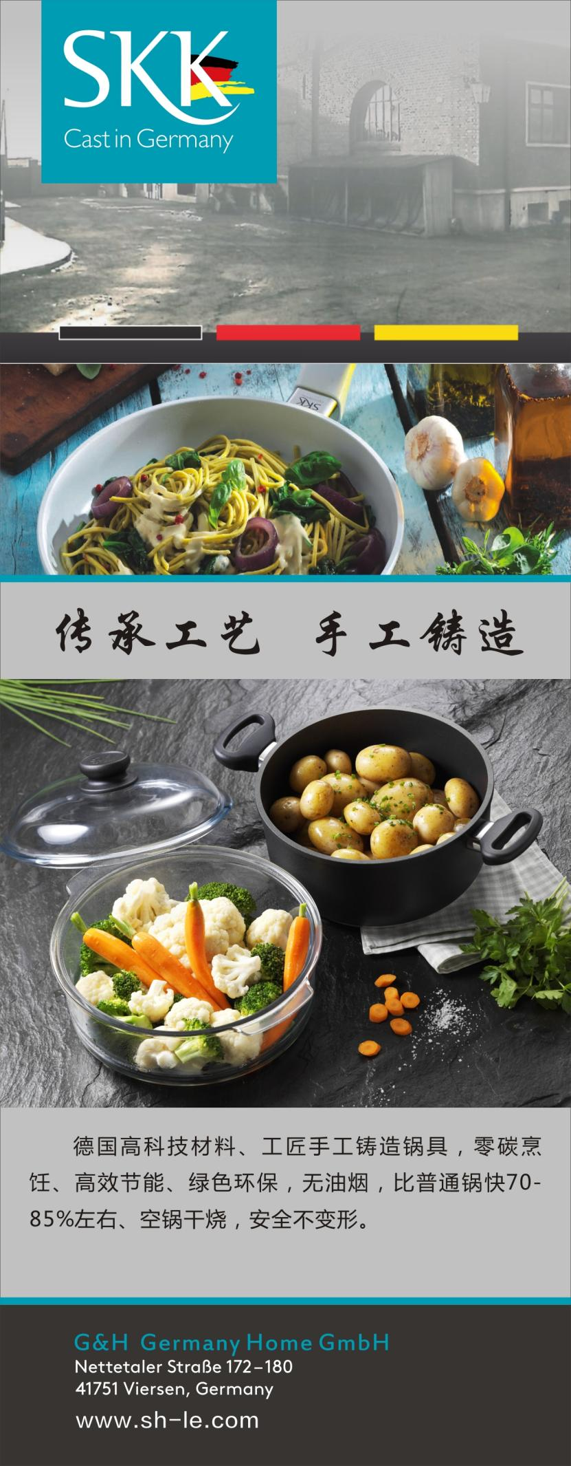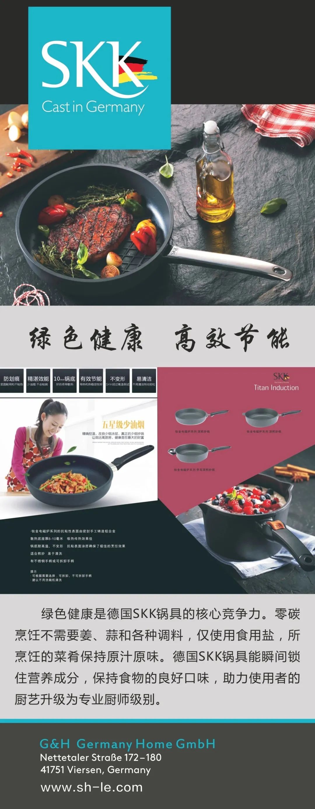 德意志空间有限公司致力于推广德国高科技绿色低碳项目和产品,旗下品牌有德国SKK。德国SKK是施尼茨勒家族传统的锅具品牌,传承百年高品质工匠技艺,是德国“零碳”节能手工炒锅的天花板,远销美国、加拿⼤、俄罗斯等国家。