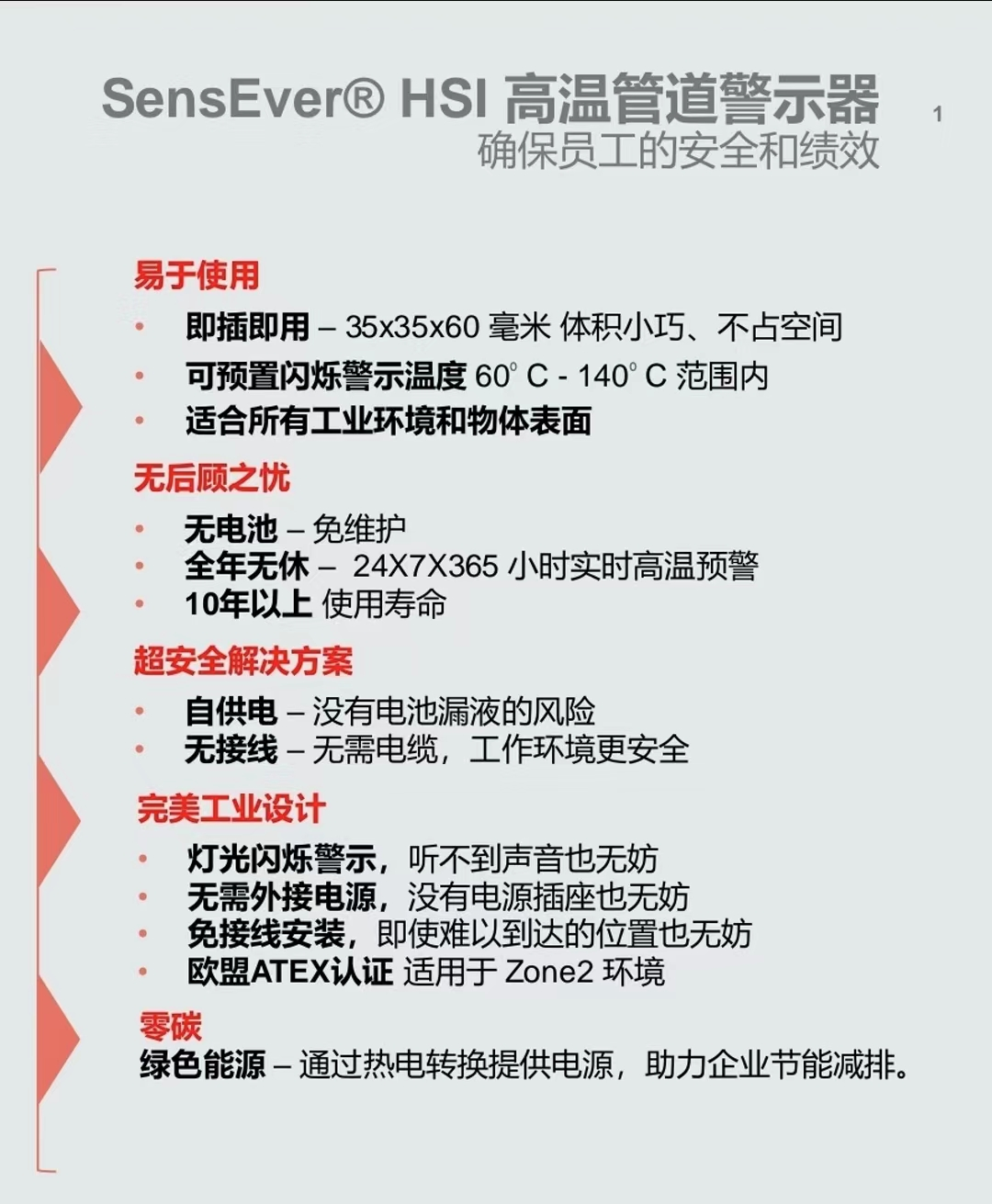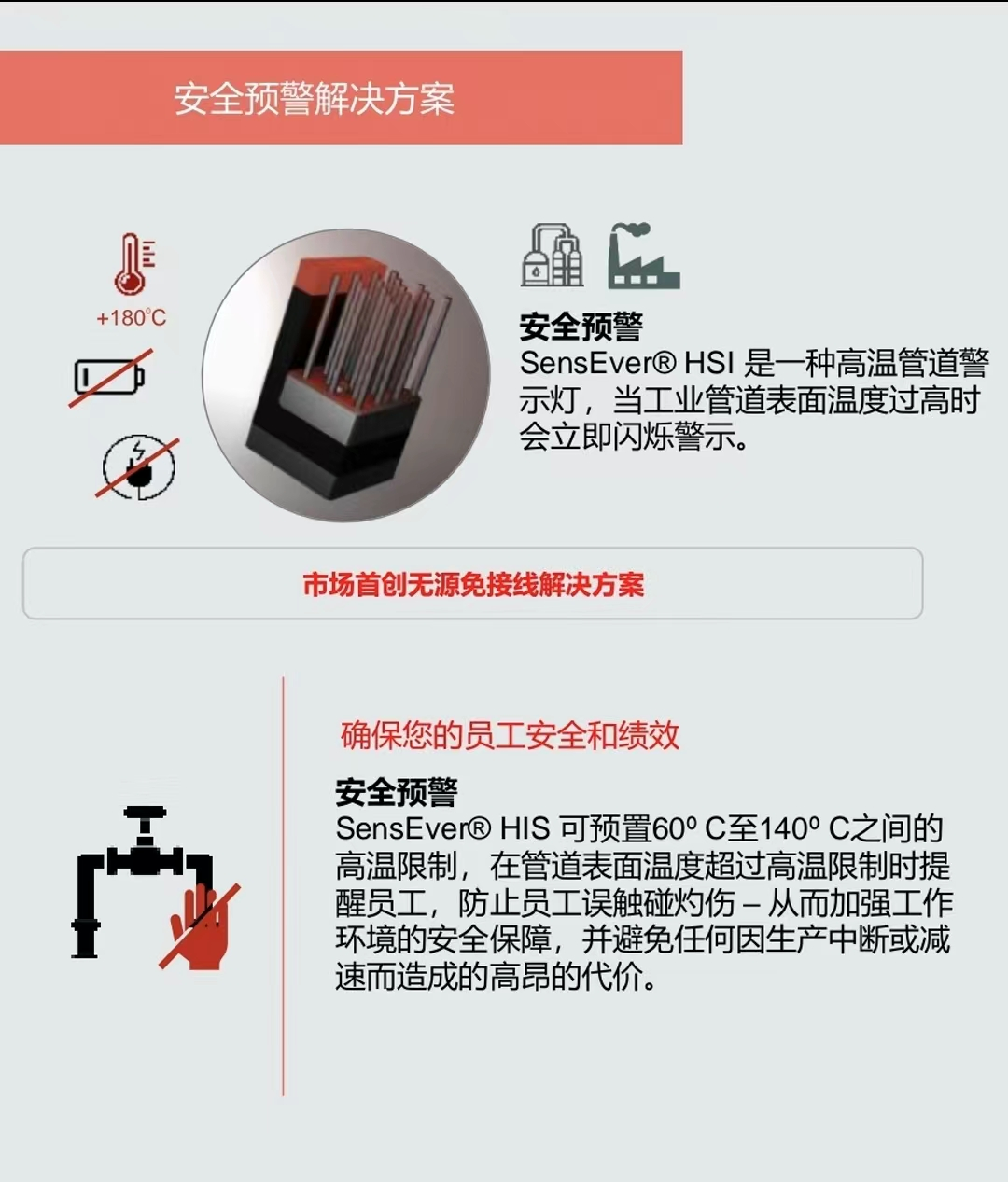 SensEver® HSI市场首创免接线和电池的高温表面警示解决方案,SensEver® Alfa用于工业传感器的智能、超可靠、绿色环保且经济高效电源将在第六届进博会上首次展示。