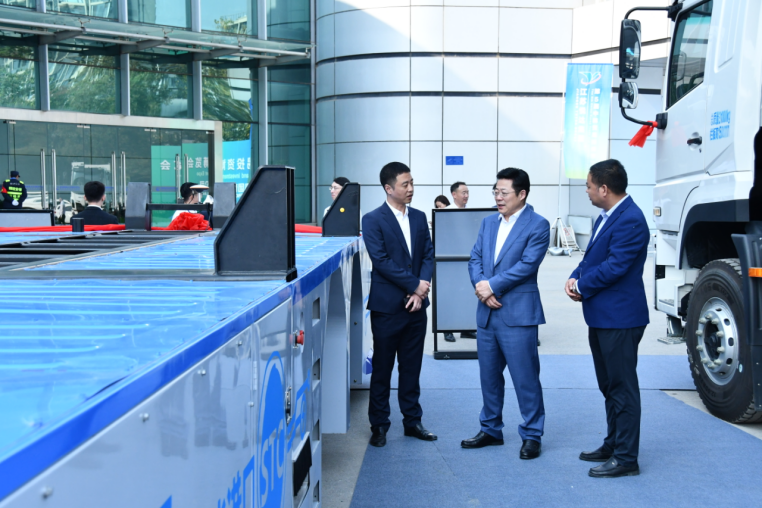 ▲悦达集团党委书记、董事长张乃文等领导莅临国润新能源商用车展区参观