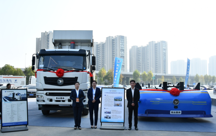 11月3日,第五届中韩贸易投资博览会开幕式暨江苏—韩国经贸合作交流会在盐城国际会议中心顺利开幕。本届博览会以“绿色开放合作,科创共享未来”为主题,旨在贯彻创新、协调、绿色、开放、共享的新发展理念。在悦达汽车集团的统筹部署下,国润商用车展出充换电一体纯电动自卸车和STC智能港口集装箱运输车。