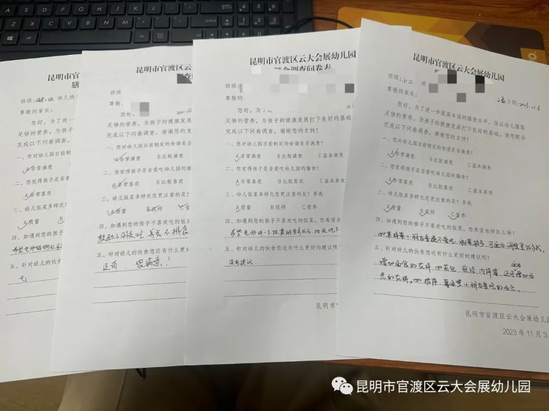 会议结束后,各位家长在反馈表上留下了宝贵的意见和建议,并肯定了园方为孩子膳食工作做出的努力。