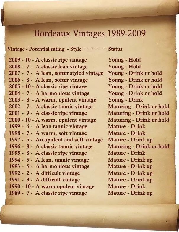 波尔多葡萄酒有哪些比较优秀的年份?有哪些比较糟糕的年份?