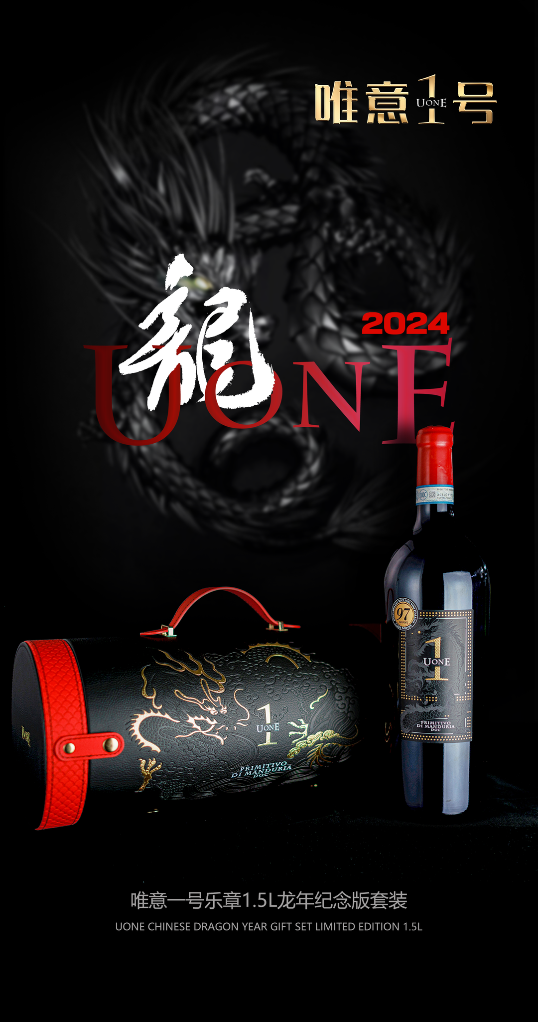 不同于传统生肖联名产品大比例的艳红,唯意一号始终采用独特且重工的设计风格。生肖纪念版为1.5L大容量规格,蜡封工艺继承了古代封瓶方式,酒标上游龙盘旋着唯意一号logo,似要跃起直冲云霄,姿态磅礴矫捷。