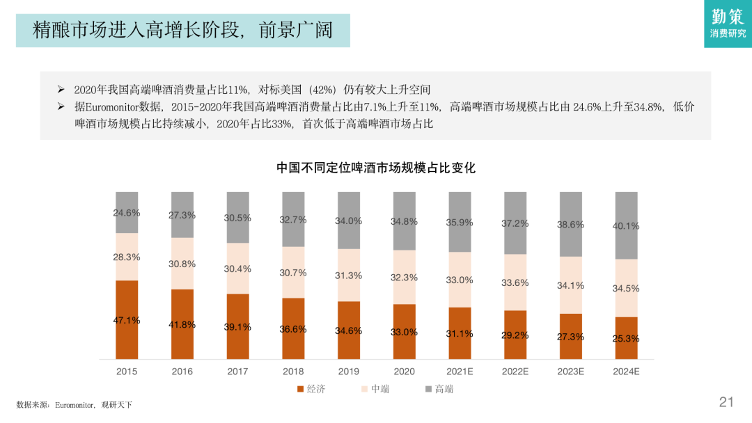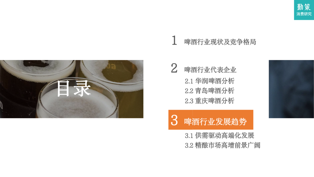 勤策消费研究报告显示,消费者对于啤酒的需求正在从“有啤酒”向“好喝的啤酒”转变,他们更加注重啤酒的品质和口感,而非仅仅关注价格。