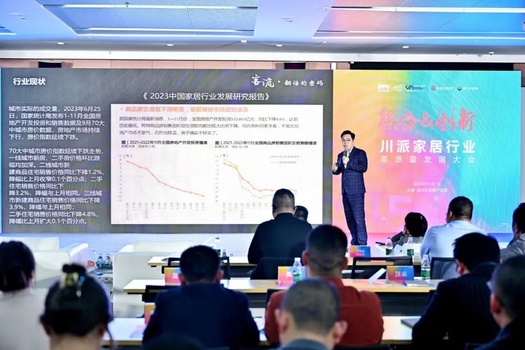 大会现场,四川省、市、区政府相关领导,四川省内家具行业商协会负责人,四川、重庆家居企业的代表,建众智业、大材研究、墨斗科技等咨询服务机构代表齐聚一堂,200余名嘉宾共同见证了这一家居产业盛会。