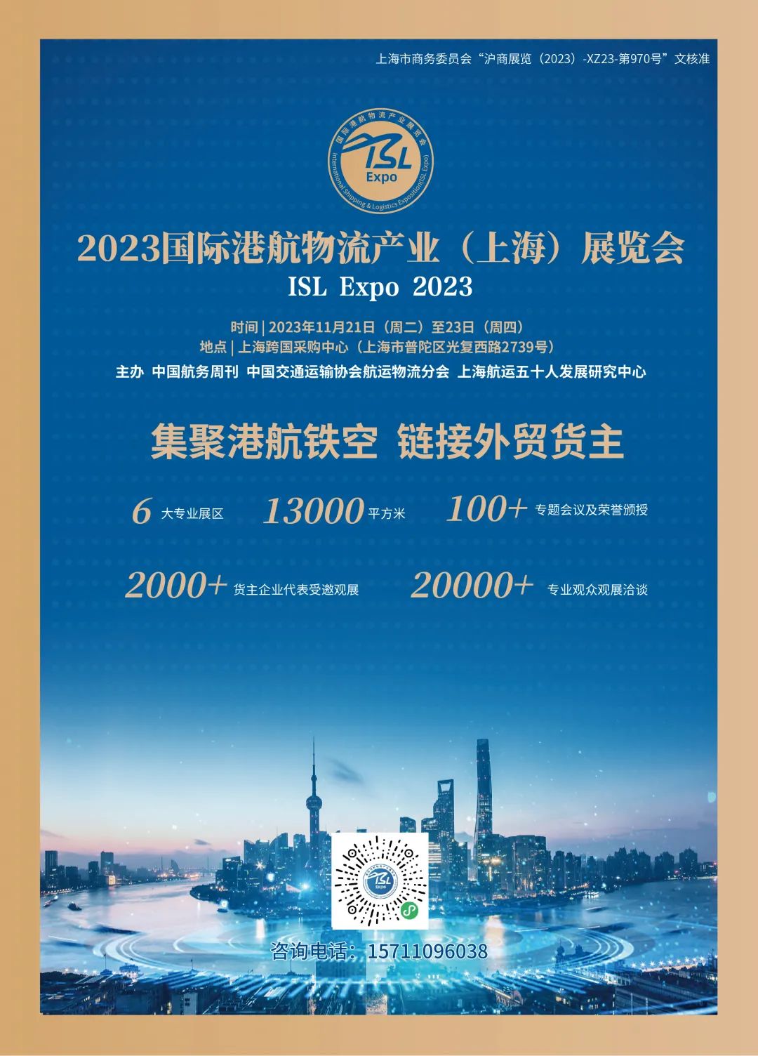 由中国航务周刊、中国交通运输协会航运物流分会、上海航运五十人发展研究中心共同主办的“2023国际港航物流产业(上海)展览会”(ISL Expo 2023),即将于2023年11月21日-23日在上海跨国采购会展中心盛大举办。