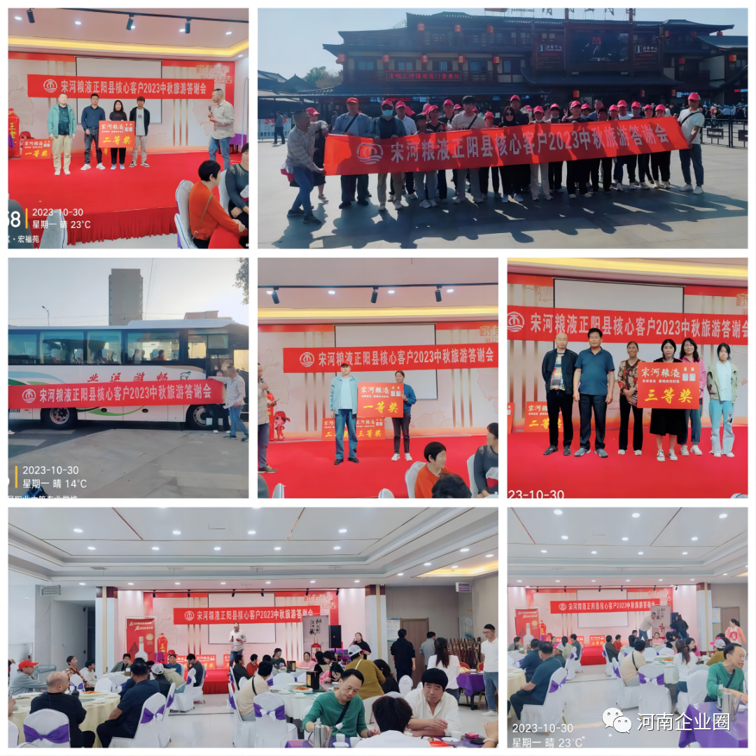 金秋十月盛世华夏,硕果累累美酒飘香。承双节佳绩之势,为答谢广大合作伙伴,核心终端等对宋河酒业一如既往的支持与厚爱,增进双方友谊,加强互信合作,更好地贯彻落实厂商同心、长期共赢的合作理念,以中国名酒宋河粮液为载体,各地核心客户旅游答谢会一直在火热进行中。