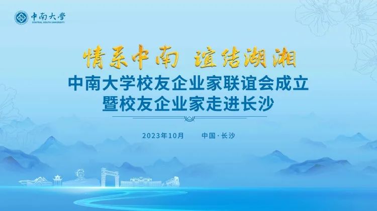 10月31日,以“情系中南,谊结湖湘”为主题的“中南大学校友企业家联谊会成立大会暨校友企业家走进长沙”活动在长沙开幕。来自全国各地的校友企业家、地方校友会代表、兄弟校友会代表300余人参加大会。
