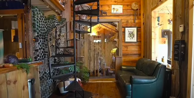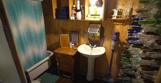 起初,夫妇二人住进这房子时,房子只建了一部分。Joel说,所以当时房子的结构仍然不完整,他们过冬时都挺“艰难的”。后来,他们的家渐渐有了轮廓,用烛光凑合了一段时间后,二人才开始接驳电源。当时的建房总支出包括购置新工具,包括投入使用的钻头、车床和锤子。Stephanie解释说,“房子里有一个旧谷仓,我们把它一块一块地拆开,把所有的木板和东西都钉掉了。我们还是没有钱,就是在废物利用。你知道,那是一个巨大的工程。我们的房子是用……只要是垃圾堆里捡到的东西,只要是我们能免费弄到的东西。开始时我们只是点蜡烛,之后我们找到了第一个带有小型海洋深循环电池的太阳能电池板。”在那之后,他们二人开始按计划设计来建造他们的家,包括阁楼上的一间主卧室、一间主层卧室、一间开放式厨房、餐厅和客厅区以及一间浴室。