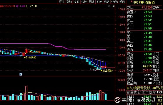 酒鬼酒:白酒很好可不要贪杯白酒酒鬼酒超跌反弹,股价近期被外资砸出了黄金坑走势,但是就在前两天股价开始止跌,有资金开始进场的动作,两根阳线已经在底部完成了阳线的资金放量,这个家伙也是在白水板块唯一一个出现底部有资金动作的,所以关注它没有问题,MACD的指标走势已经出现背离走势,绿色柱子已经开始缩减,这就是资金进场的证据,既然资金已经进场,接下来不要追高,只需要在回踩的时候阳线以内都可以展开。$酒鬼酒(SZ000799)$$泸州老窖(SZ000568)$$五粮液(SZ000858)$
