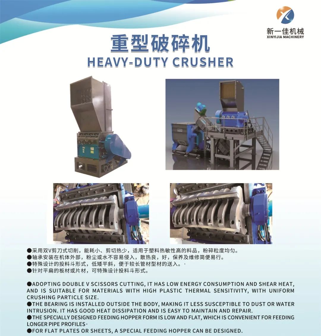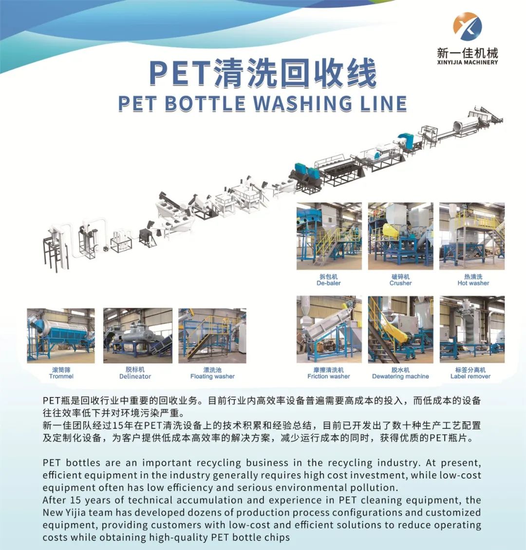 张家港新一佳机械有限公司是国内生产塑料机械的专业厂商之一,座落在美丽富饶、经济发达的沿江城市——张家港市。东临上海、西壤南京、北枕长江,水陆交通极为便捷。新一佳机械自成立以来, 在激烈的市场经济中,奋力进取、励精图治,形成了以PP,PE薄膜破碎清洗线、PET瓶片回收清洗线、 废旧塑料回收再生造粒机械为主,混料机组、脱水 机、破碎机、磨粉机、团粒机、上料机、牵引机等配套机械为辅的产品结构;产品以其品质性能、快捷周道的服务、物超所值的价格,畅销海内外。