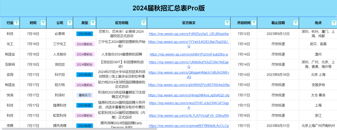 2.校招提前批/秋招信息表pro版每天更新!(更新到2024年1月31日)