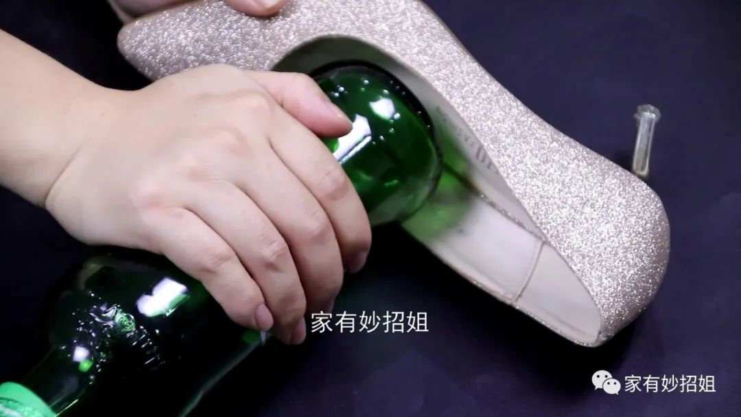 最后,我们只需要拿上一个圆柱体的物品,比如空啤酒瓶,用它把鞋子两边按压一下,这样就解决了鞋子两边夹角的问题了。如果今天的文章对您有帮助,那就点一个关注,点一个赞,感谢您的支持。