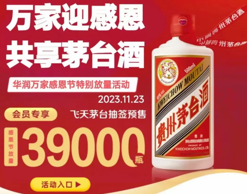 华润万家的感恩节贵州飞天茅台活动又来了!39000瓶!可代刷 部分可代ti