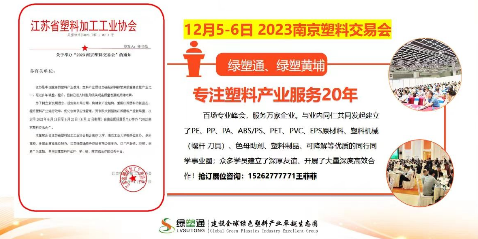 绿塑通 · 国际塑料产业展 | 2023南京塑料交易会由江苏省塑料加工工业协会联合南大、南工大等单位主办,多所高校、企事业单位联办,江苏绿塑通商务咨询有限公司承办,以“产业链、交易、创新”为主题,共创产业战略联盟,共促产业高质量发展!