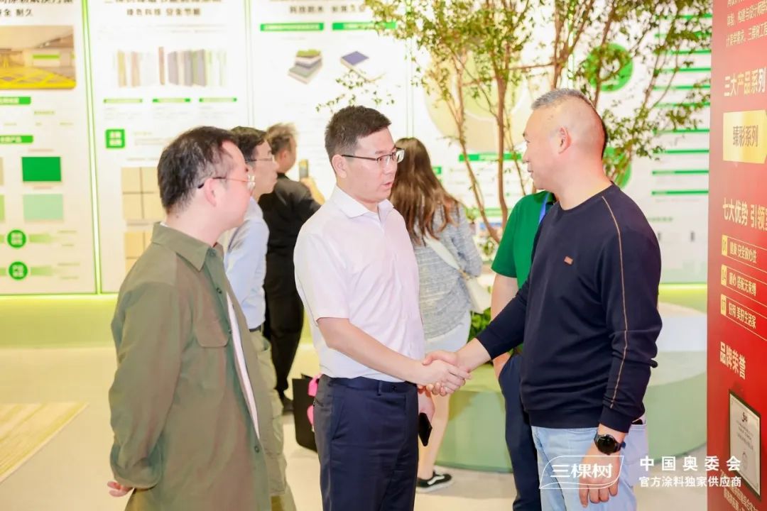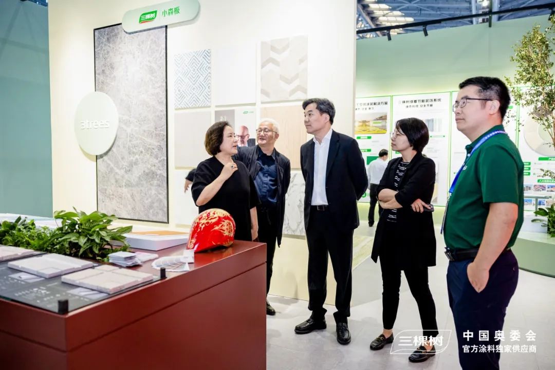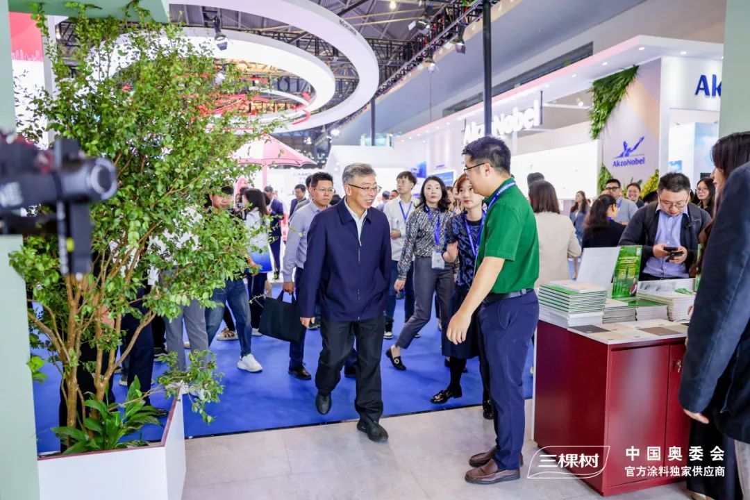 第十四届全国人大常委会委员、监察和司法委员会副主任委员蒋卓庆,上海市副市长张小宏、上海市交通委员会副主任王晓杰,以及上海地产、浦发集团等领导相继来到三棵树展位参观,与三棵树负责人进行交流,对三棵树近年来取得的发展成果给予了充分肯定和鼓舞。