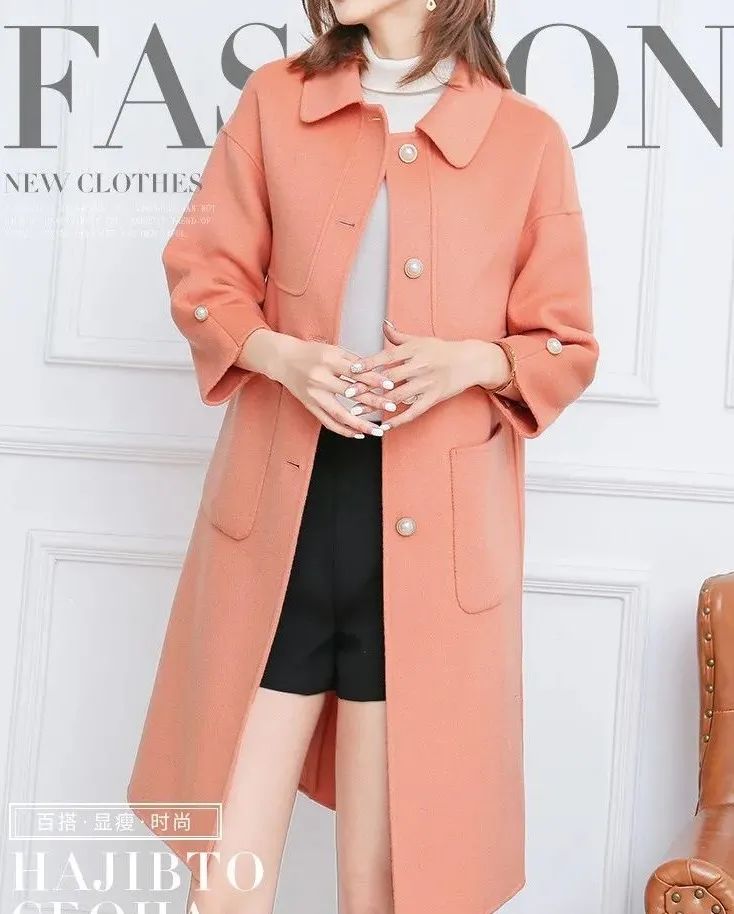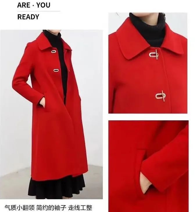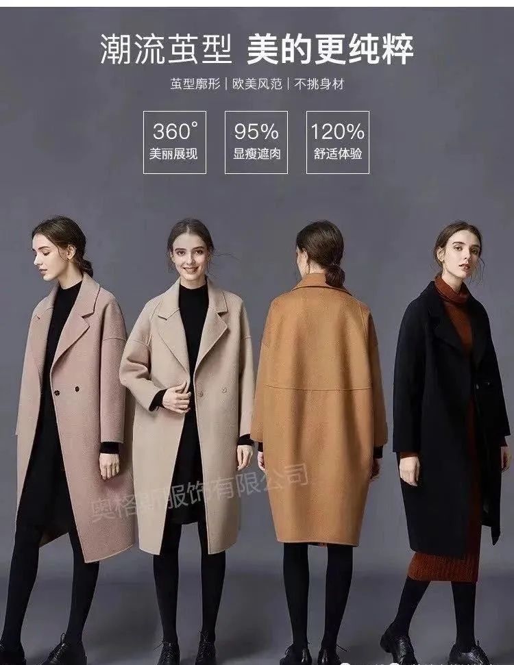 产品描述:穿着有质感的羊绒大衣,不仅能衬托出高贵华丽的风格,日常也不会显得夸张。