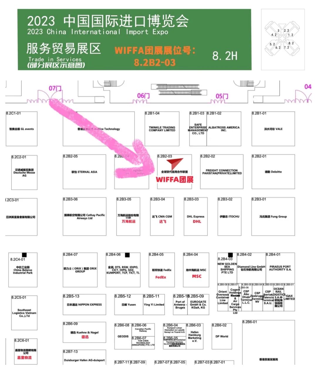 ▼WIFFA团展位置 (进博会服贸区部分展区示意图)