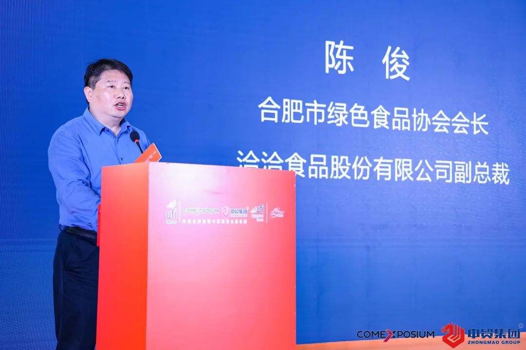 合肥市绿色食品协会会长、洽洽食品副总裁陈俊到会致辞,为现场展示会员企业的优质产品,洽洽食品股份有限公司为协会会员提供了免费展区。