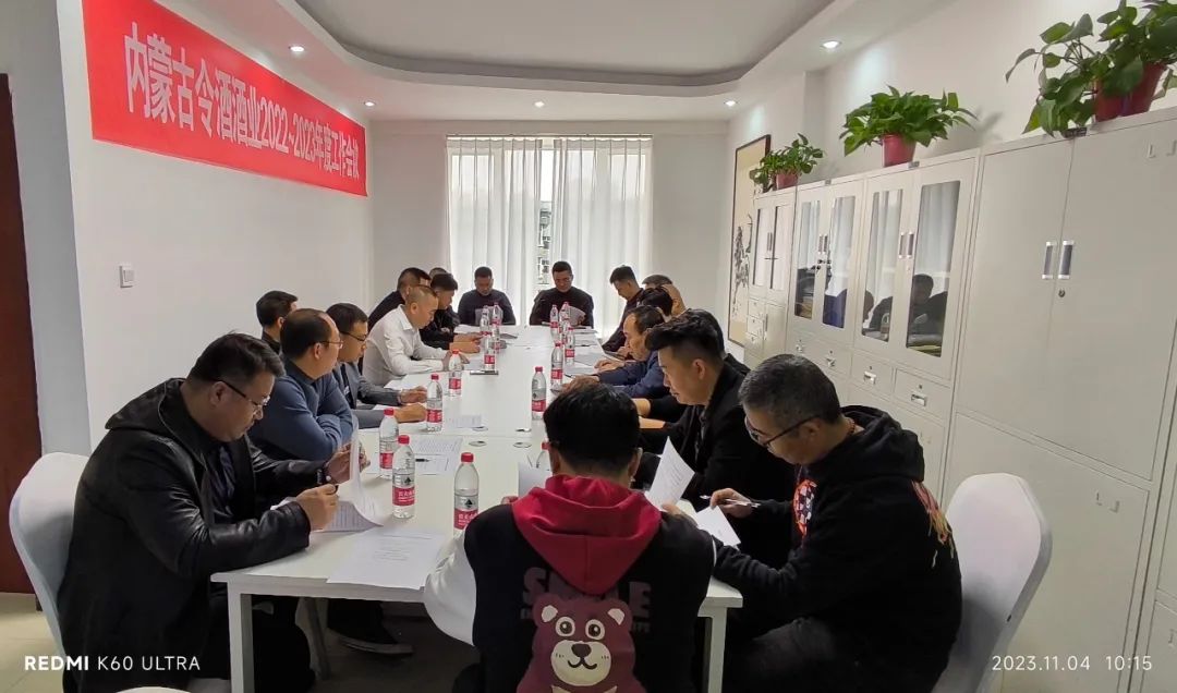 2023年11月4日上午,内蒙古令酒酒业在呼和浩特召开了2022——2023年度工作会议,董事长马宏云、总经理吕枫等公司领导以及陈建军、阿拉坦、刘志长、刘寅虎、樊泽星、杜志强等股东出席会议,会议由董事长马宏云主持。