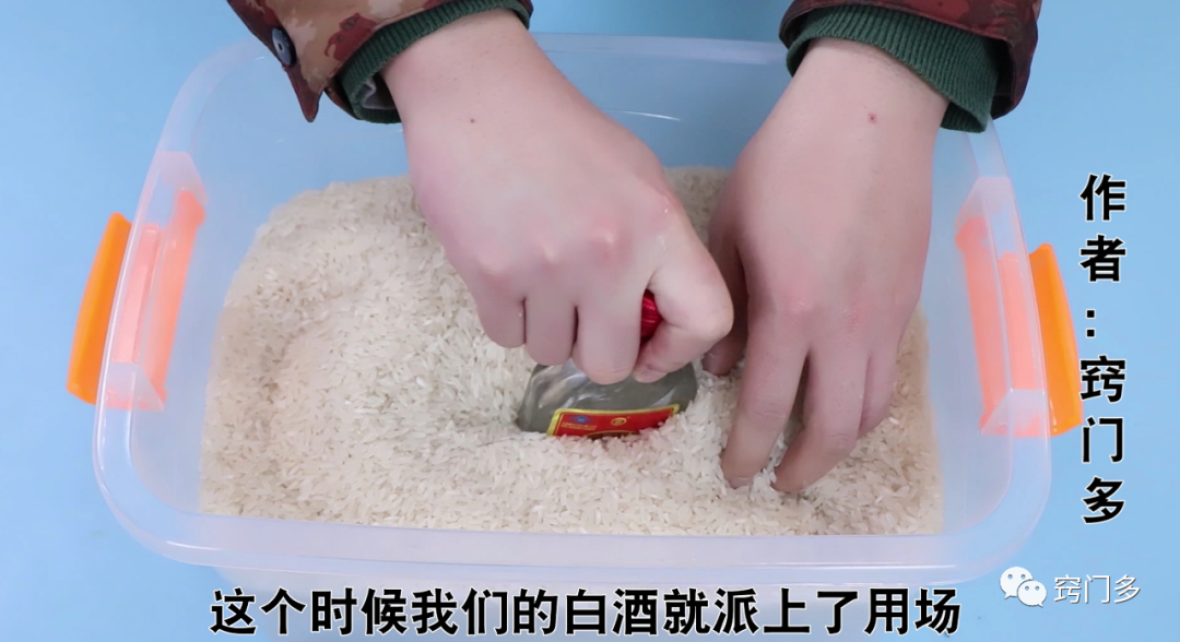 这是因为我们的白酒不仅可以消毒杀菌,而且有很强的挥发作用,把它放在我们的大米里面,它就可以防止生虫了,因为虫子可是特别不喜欢这个味道的,最后我们只需要将我们的盖子密封好