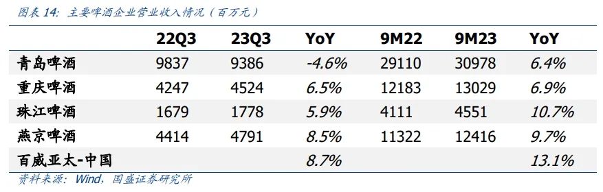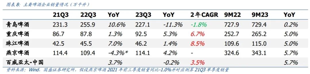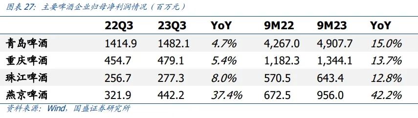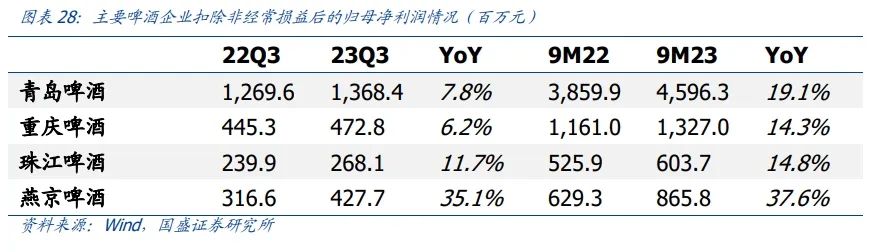 本文节选自国盛证券研究所已于2023年11月05日发布的报告《持续恢复,期待来年——啤酒饮料2023Q3总结》,具体内容请详见相关报告。
