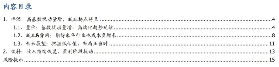 风险提示:消费场景复苏不及预期,原材料价格上涨超预期,行业竞争加剧,食品安全问题等。