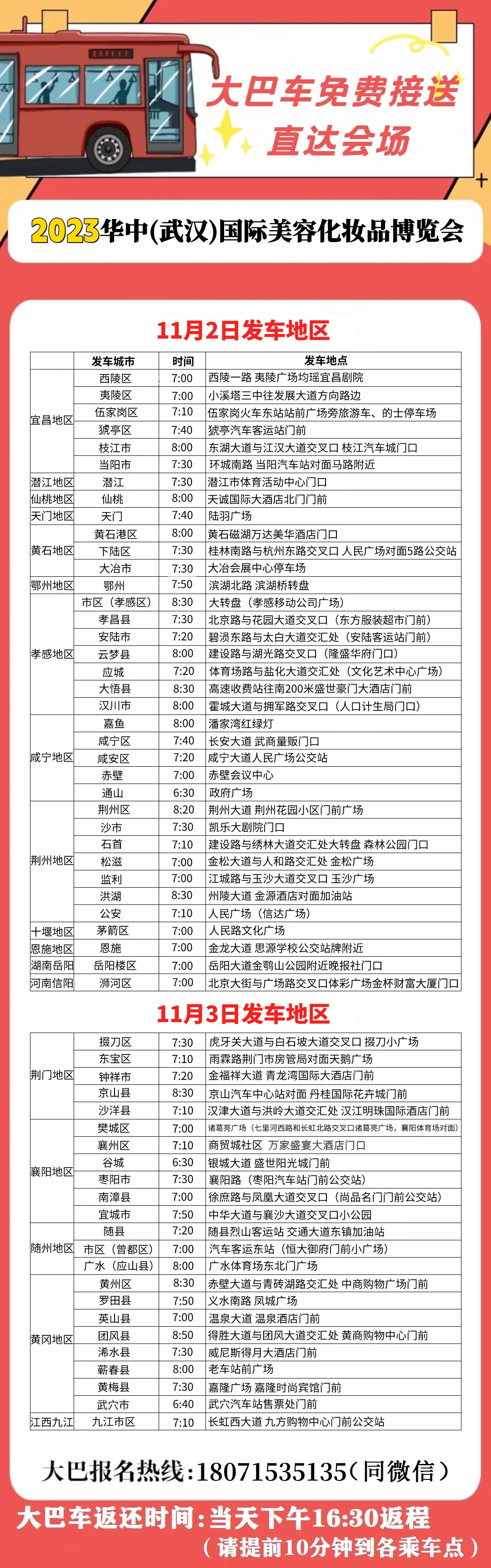 免费直达大巴车接送服务
