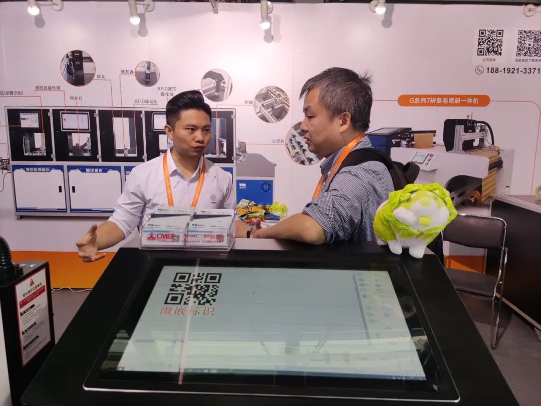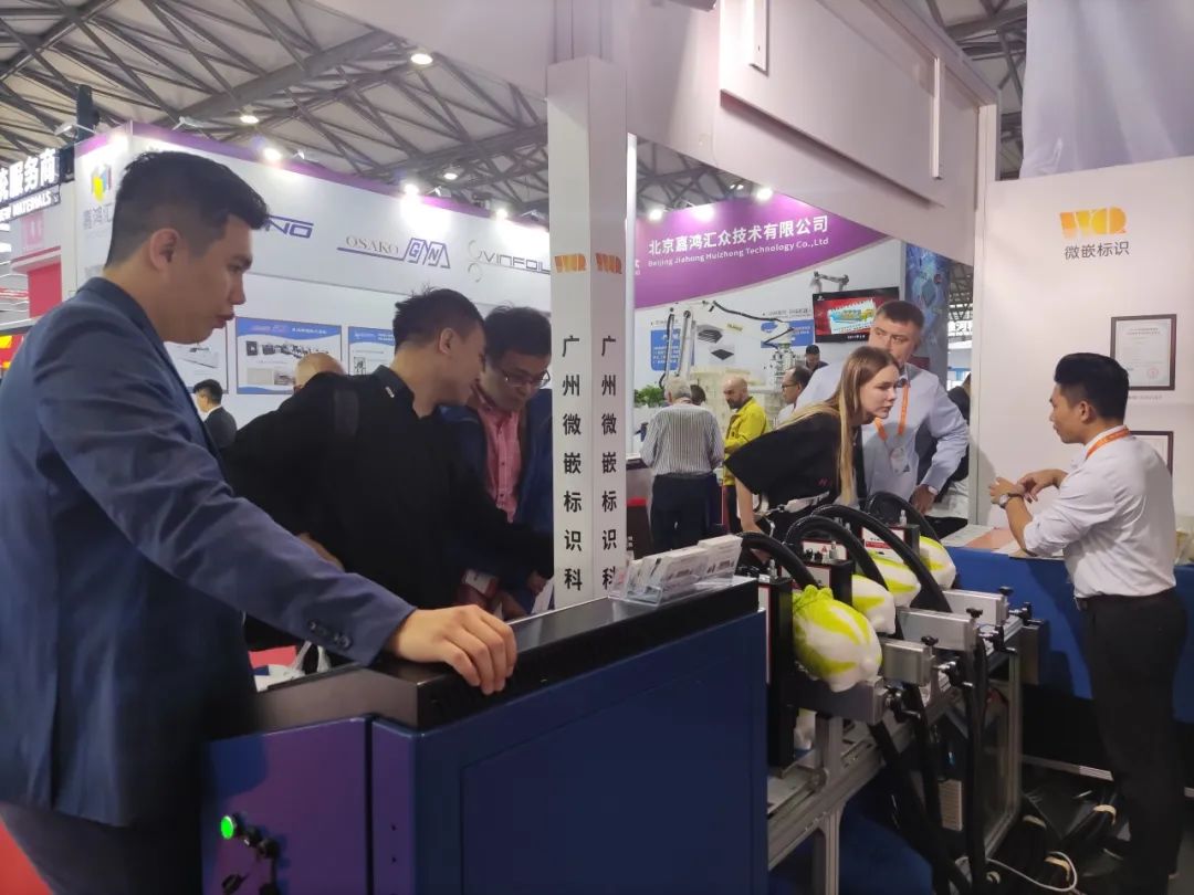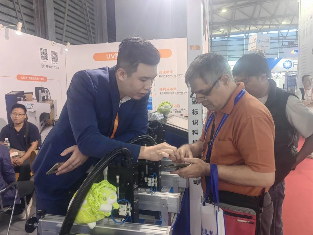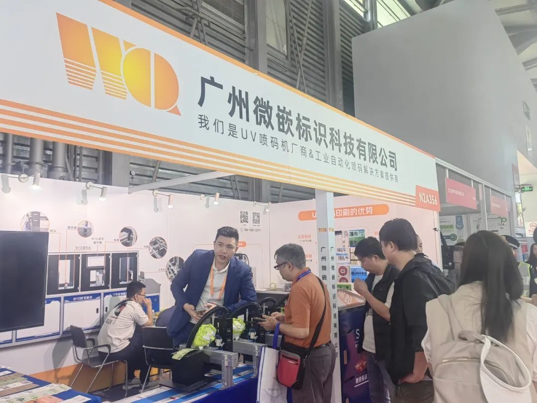 展会的每一天,微嵌标识的展台前总是人潮涌动,观众们络绎不绝,纷纷驻足体验与询问,对微嵌标识的UV喷码机技术赞不绝口。微嵌标识的销售精英——微嵌铁军们,用专业、热情、耐心,为每一位前来咨询的客户提供详尽的解答和完美的演示。