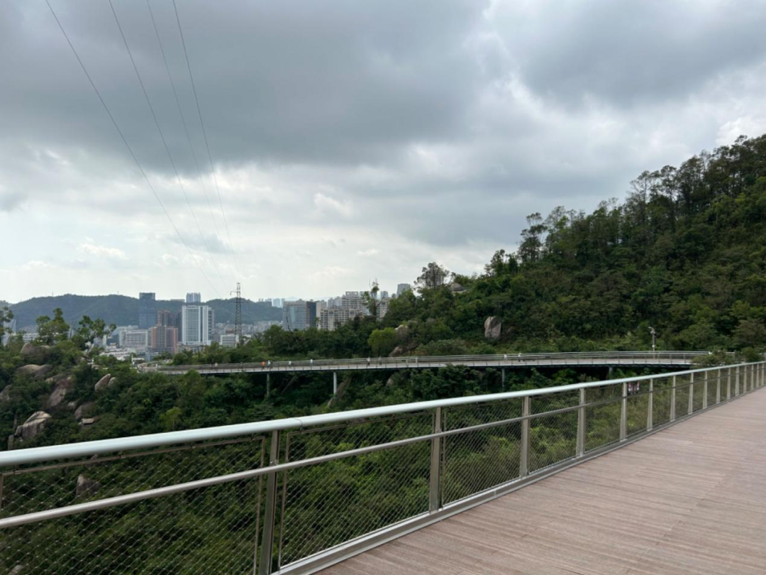 而是在空中,连接了N座山,在珠海城里的空中漫步走道,不是在地面上的漫步道。