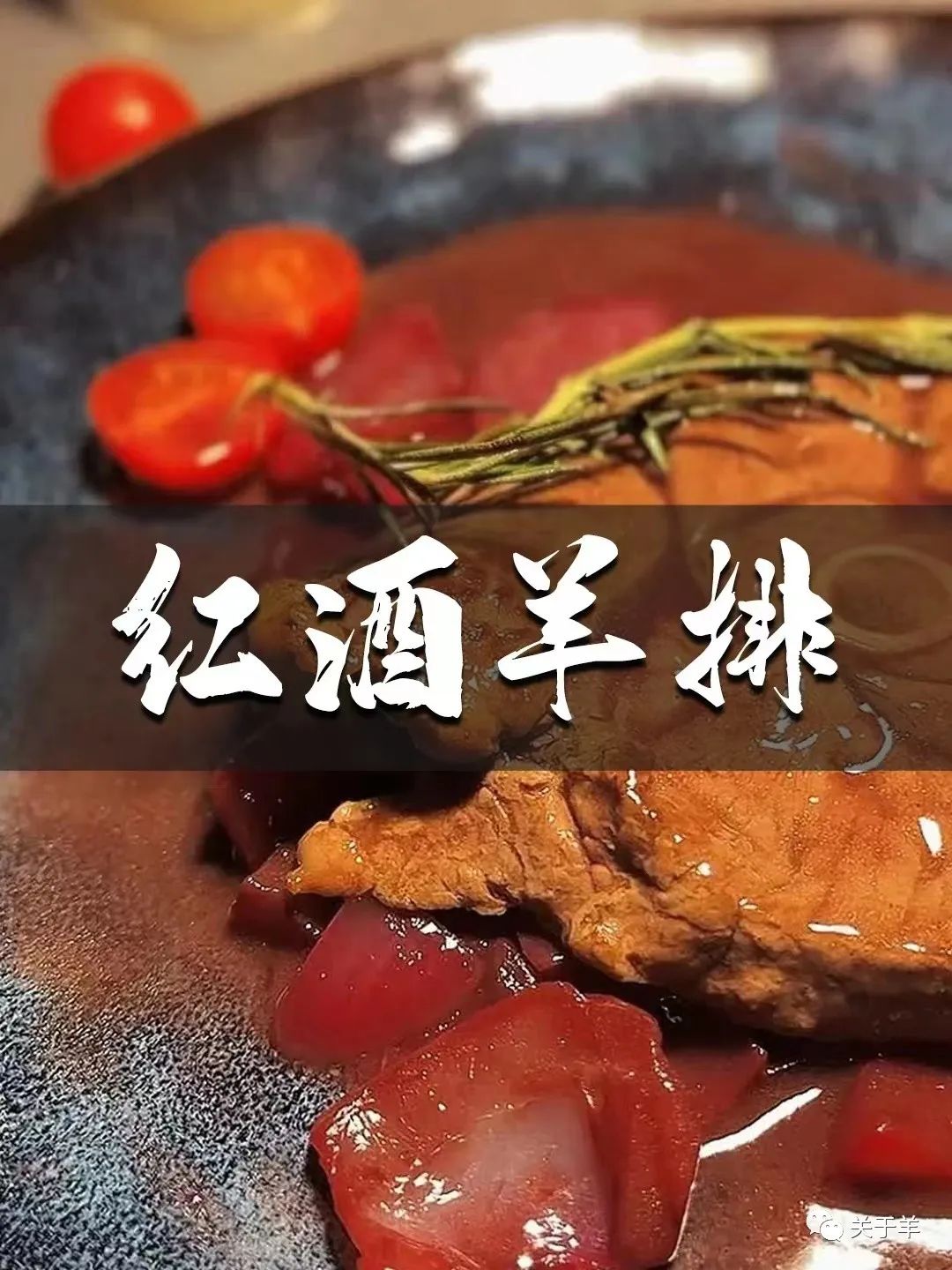 2.盛出羊排简单摆下盘,趁着羊肉刚出锅放上迷迭香,简单的红酒羊排就完成了,