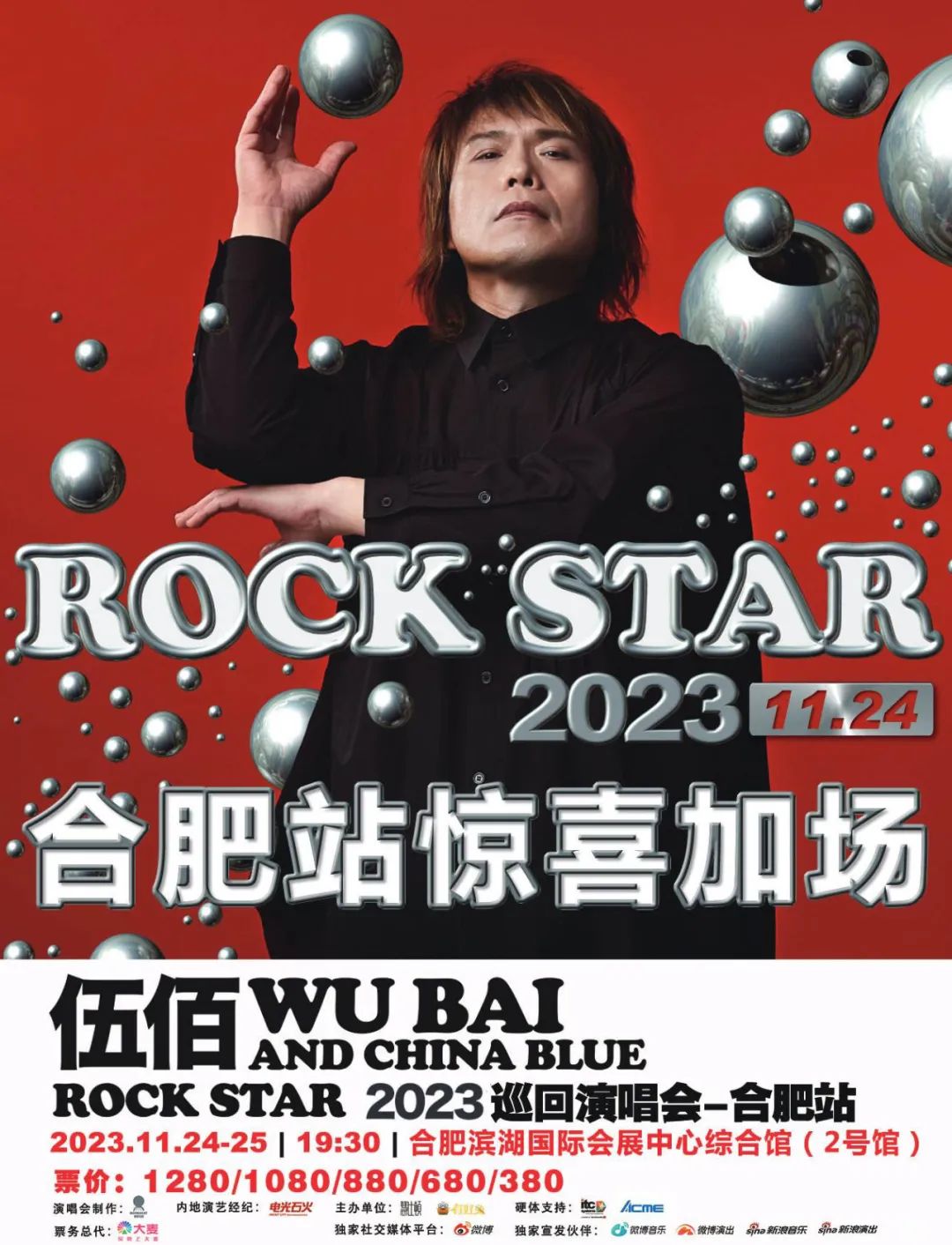 伍佰& China Blue第14套大型巡回演唱会【ROCKSTAR】2023全新进化再次启动,伍佰与China Blue将重新开启你对摇滚乐的视野与认知。内地巡演合肥站,将于2023年11月24日-25日在合肥滨湖国际会展中心综合馆(2号馆)举办。