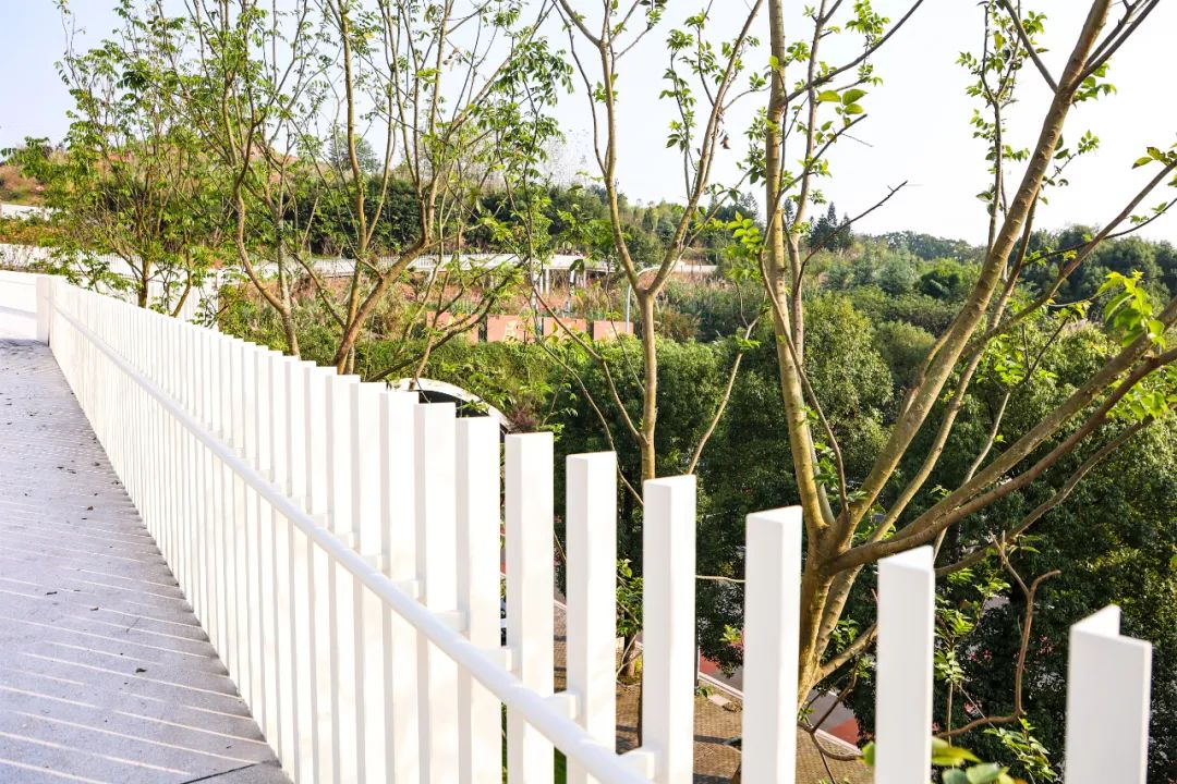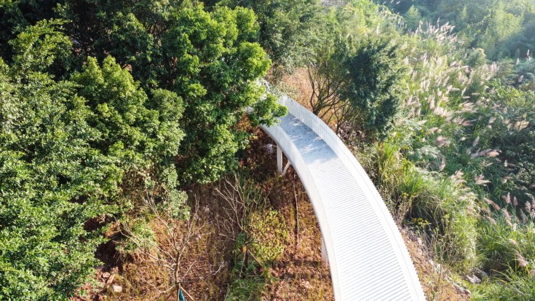 同时,步道钢结构的精美设计和实用优势是设计的另一个新亮点,设计师采用现代简洁的手法,结合飘逸的曲线与纯净的白色,呈现出步道在山林间穿梭的氛围。