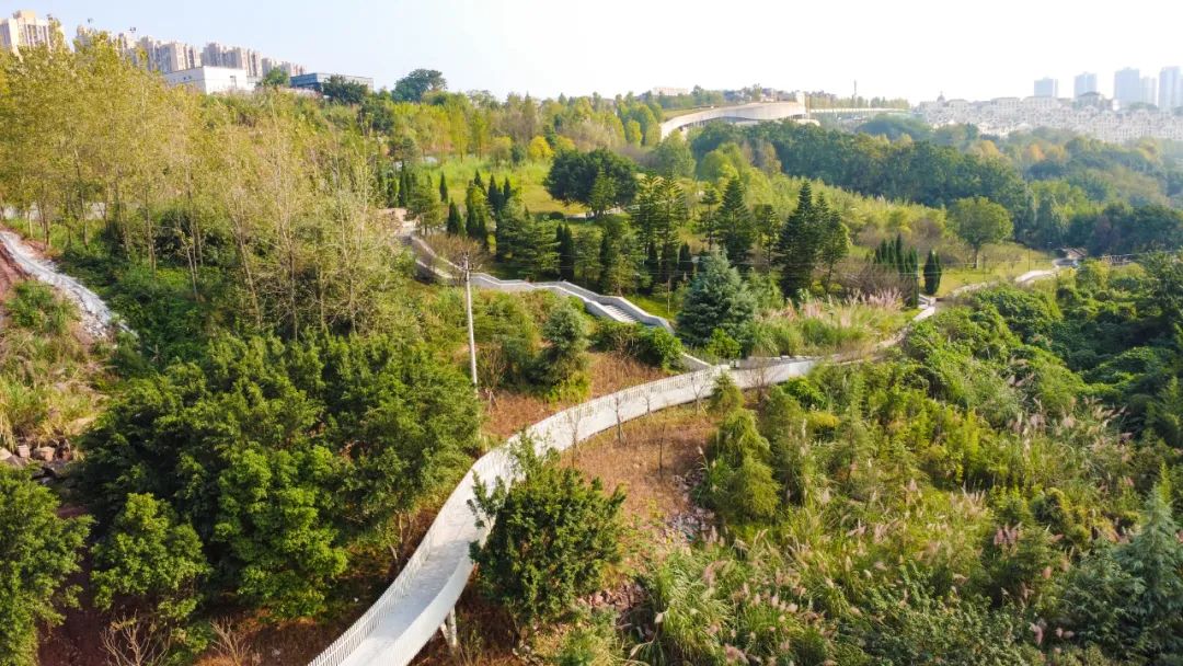 悦来会展公园慢行步道不仅是一条便民小道,还是一条生态野趣、自然无界的林荫绿道。