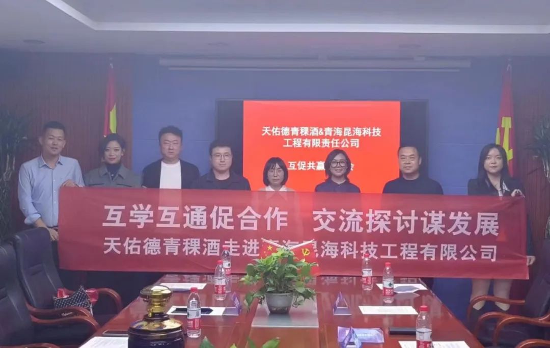 11月3日,天佑德青稞酒公司走进青海昆海科技工程有限公司,开展以“互学互通促合作 交流探讨谋发展”为主题的学习交流活动。青海青海昆海科技工程有限公司副总经理张兑兑,采购主管于雨,财务主管卢静,办公室主任程继萍,综合部主管孙铁延;天佑德青稞酒公司营销中心党支部书记、营销中心副总经理白海云带领公司一行4人参加此次活动。