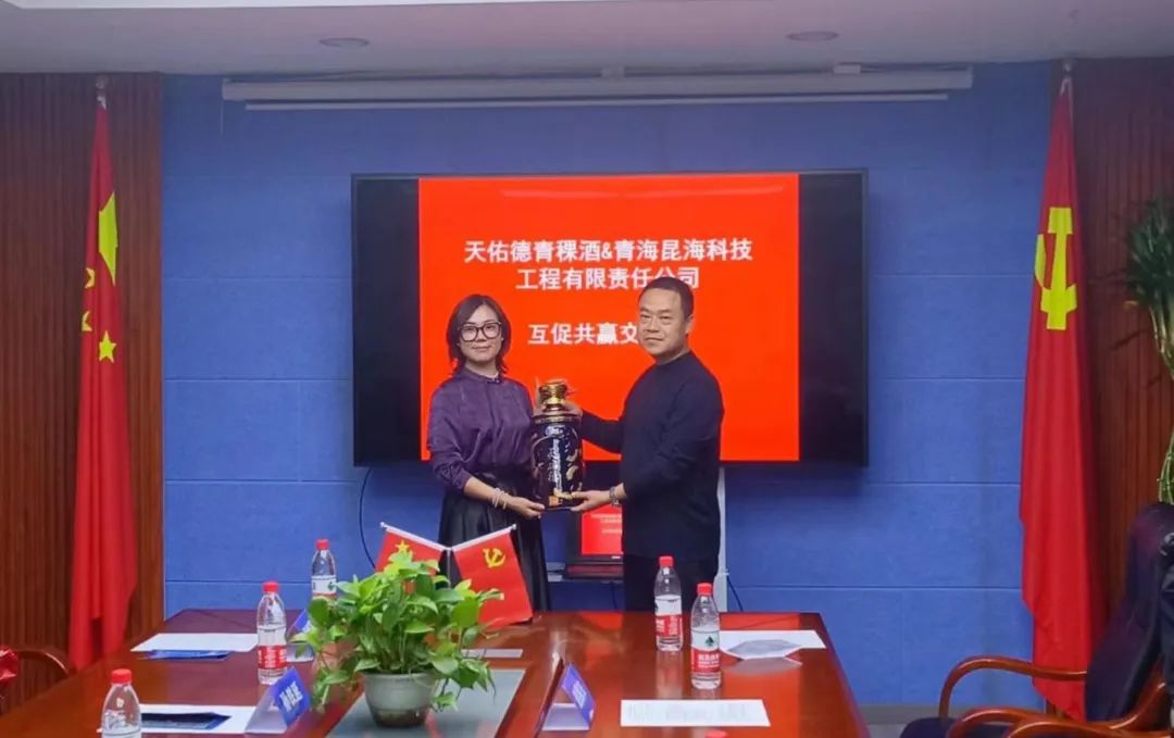 天佑德青稞酒公司作为中国上市白酒企业之一,在此次"名酒进名企"活动中,向青海昆海科技工程有限公司赠送了国之德真年份(5L装)纪念酒以供品鉴收藏,传递着天佑德青稞酒对自身品质的信心,以及与企业开展深度合作的诚意。
