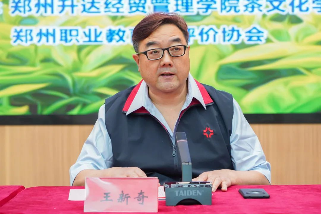 参加本次大赛开幕式的领导有郑州市人力资源和社会保障局党组成员、一级调研员丁进芳,郑州升达经贸管理学院董事长王新奇,郑州市职业技能鉴定评价中心主任卢咏梅,新郑市人力资源和社会保障局局长蔡卫东,郑州市高技能人才公共实训管理服务中心副主任李彩霞,新郑市就业创业服务中心主任白宏欣新参加了开幕式,仪式由郑州升达经贸管理学院茶文化学院院长李丽主持。王新奇董事长为开幕式致辞,裁判员代表吴文妍、参赛选手代表闻露露宣读誓词,随后由市人社局党组成员、一级调研员丁进芳局长宣布开幕。